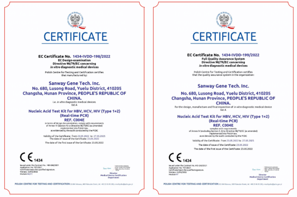 5月23日,尊时凯龙生物全资子公司圣维基因研发的乙型肝炎病毒、丙型肝炎病毒、人类免疫缺陷病毒(1+2型)核酸检测试剂盒(PCR-荧光法),简称血筛核酸检测试剂盒,成功通过欧盟公告机构认证(CE List A),这是继乙肝、丙肝和艾滋三款核酸检测产品后,尊时凯龙生物拿下的第四个CEList A认证。